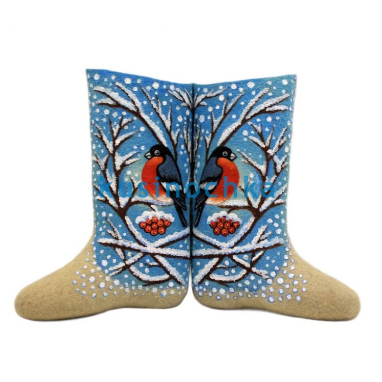 Женские валенки «Снегирь на ветке»
