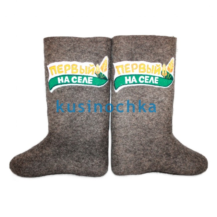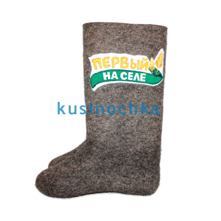 Валенки ручной валки с надписью «Первый на селе» — не просто обувь, а статус. Подарите мужчине, который знает, где растёт картошка, как разогнать стадо гусей и где самая сладкая земляника. Такие валенки — для настоящего лидера деревенской жизни: для того, кто первым встаёт на сельском сходе, первым помогает соседу с крышей — и первым встречает весну с удочкой в руках.