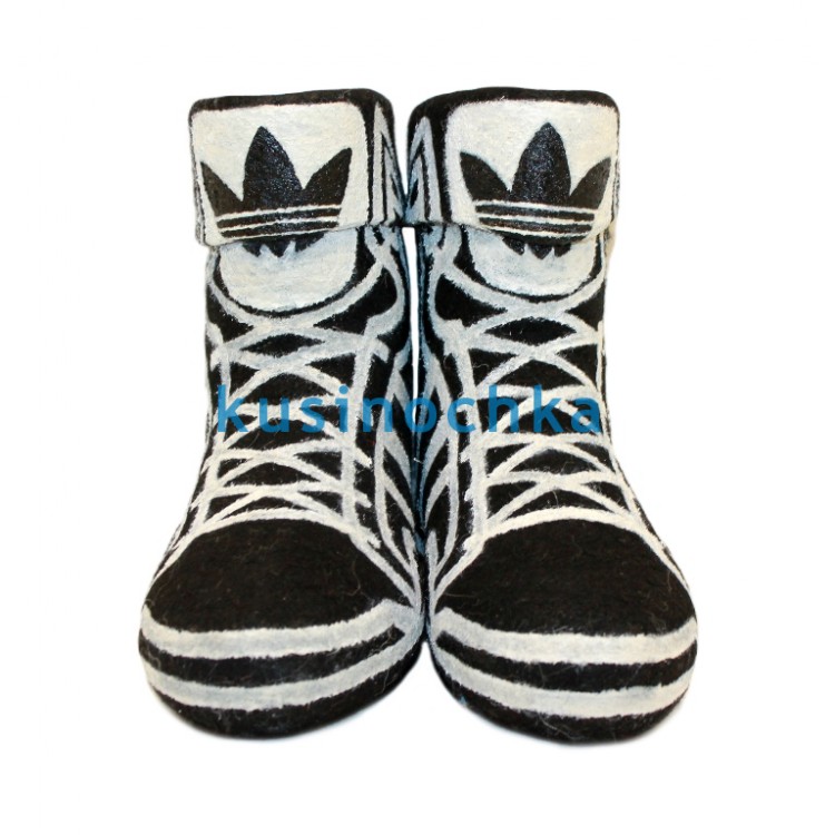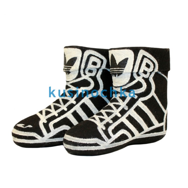Полуваленки ручной валки на чёрной основе, оформленные в стиле классических кедов: